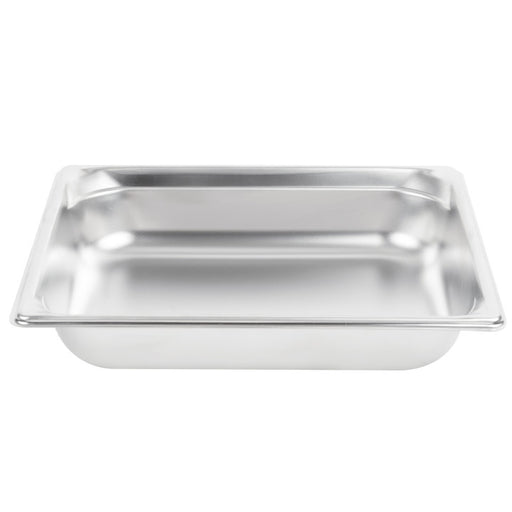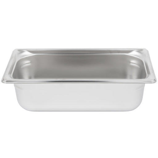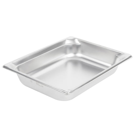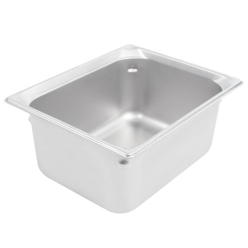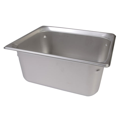 Durable 22-gauge 300-Series stainless steel 1/6 size pan, 2-1/2" deep Built-in anti-jam stacking lugs Reinforced, spouted-shape corners add streng...