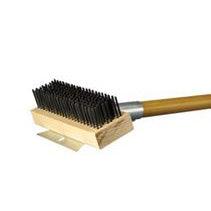 27" broiler brush with scraper Large and coarse flat wire bristles scrape Provides quick and extremely aggressive removal of grease and burnt-on d...