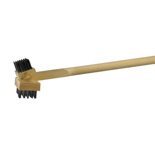 30" broiler brush with scraper Large and coarse brass bristles Compact profile for cleaning in tight and narrow spaces Provides quick removal of ...