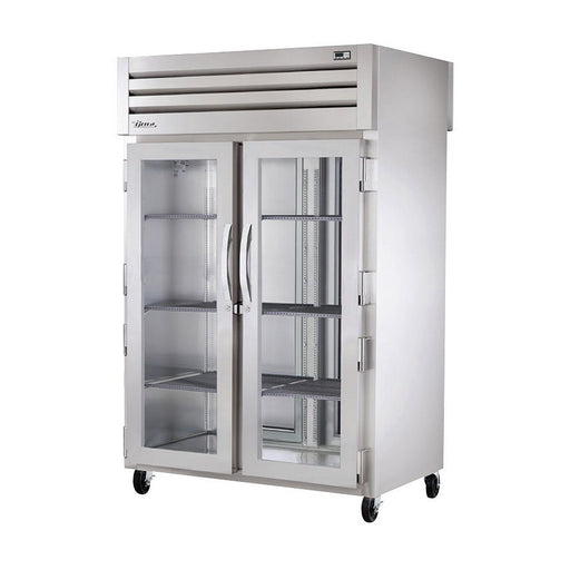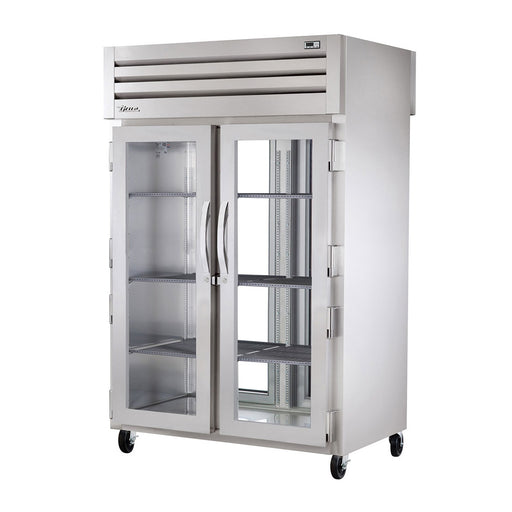 True STG2RPT-2HG/2HS-2S-HC 52" pass-thru half front / solid rear swing door refrigerator is factory engineered, self-contained, capillary tube sy...