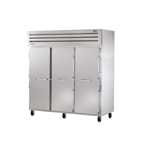 This True STA3R-3S Three-Section Reach-In Solid Swing Door Refrigerator is factory engineered, self-contained, capillary tube system using enviro...