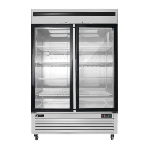 54" bottom-mount glass 2-door merchandising freezer 44.8 cu. ft. capacity Designed for commercial use Features a sleek and modern design Bottom-m...