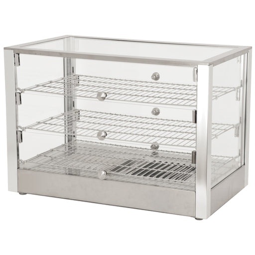 15" Countertop Display Warmer With Front Curved Glass Removable fixed chrome plated shelves included Stainless steel construction with hinged glas...