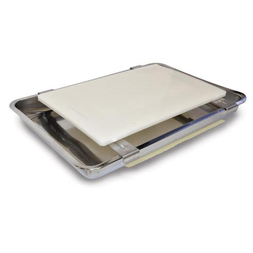 15.4" x 10.2" cutting board Stainless steel drip pan Made of polyethylene Perfect for fish filet The Nella 28355 15" x 10" Carving / Filet Cut...
