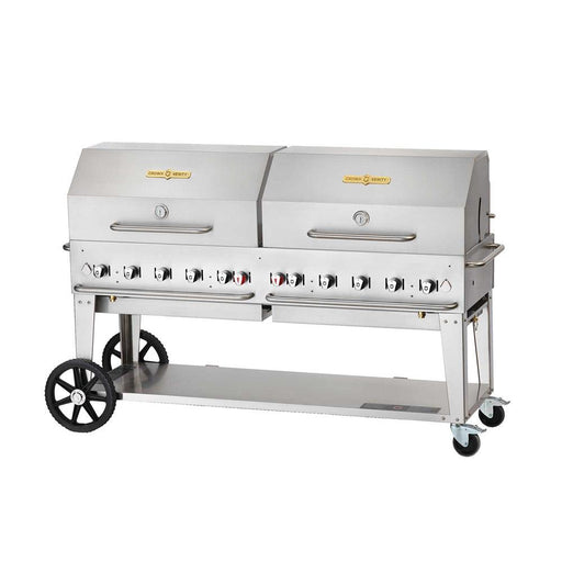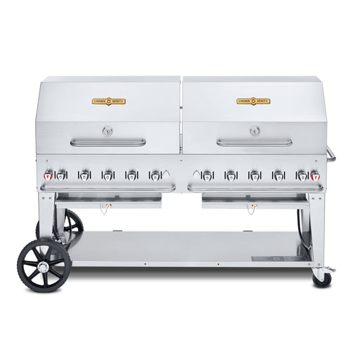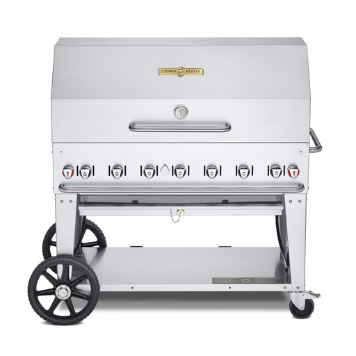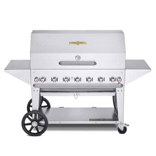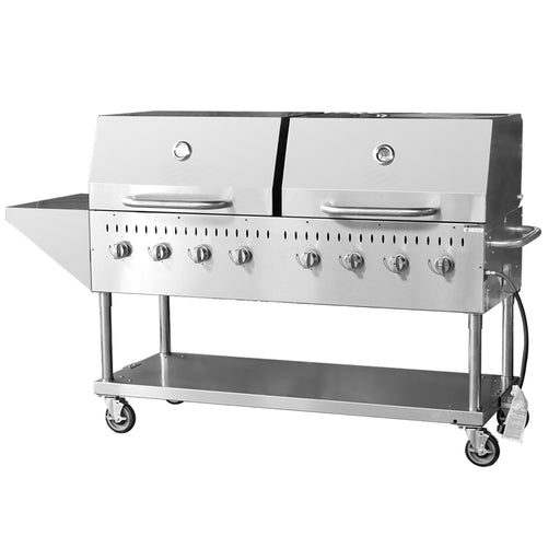 60" mobile BBQ grill with dome and wind guard package Stainless steel construction for durability Equipped with eight burners and two side shelve...