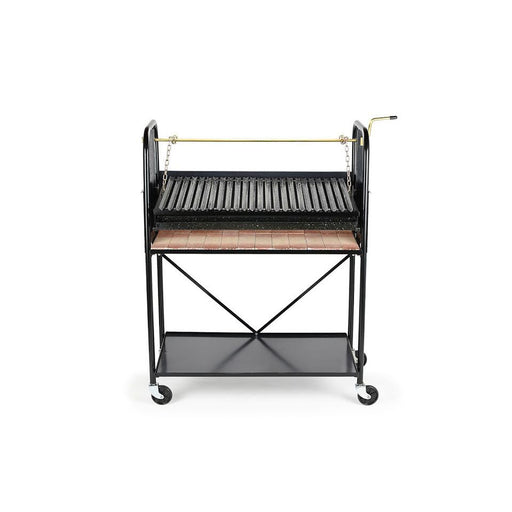 Four wheels made of stamped and enamelled strip Refractory brick floor Practical sheet metal floor to store accessories Lifting system to adjust t...