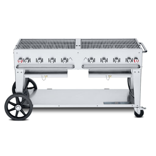 72" mobile BBQ grill with 10 burners Stainless steel construction for durability Fueled by natural gas Removable grease tray for easy cleaning Ro...