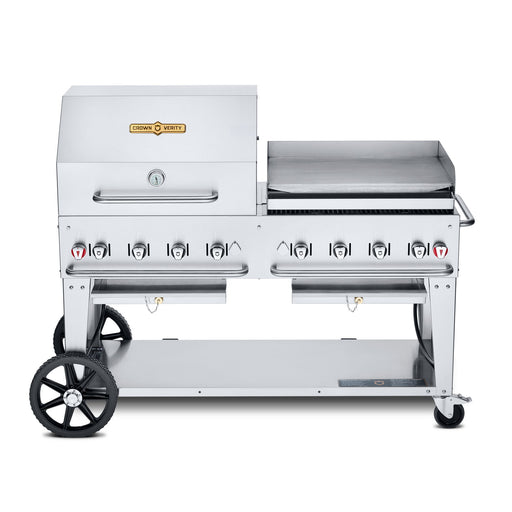 72" Mobile BBQ Grill with Dome and Pro Griddle Package Stainless steel construction for durability Fueled by natural gas Removable grease tray fo...