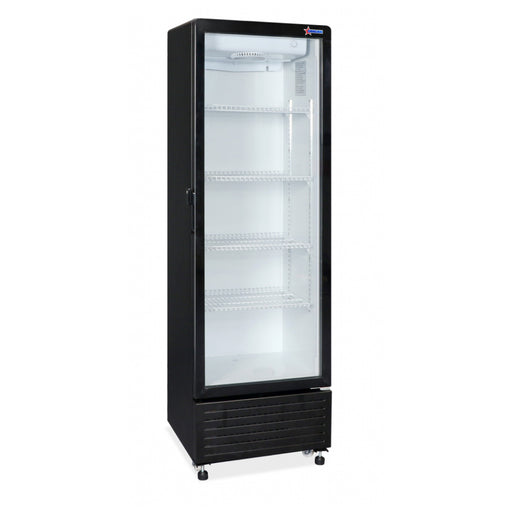 24" cooler merchandiser 5.2 cu. ft. capacity Temperature range: 33°F to 40°F (0.5°C to 4.4°C) Black Powder Coated Steel Exterior Self-closing sin...