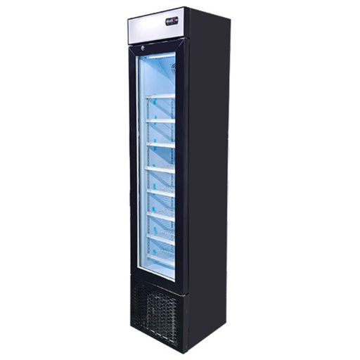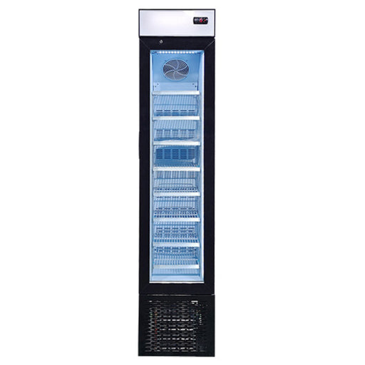 145L capacity Slim glass door design Top lightbox for product visibility 16.5" width Ideal for displaying food and beverages Adjustable temperatu...