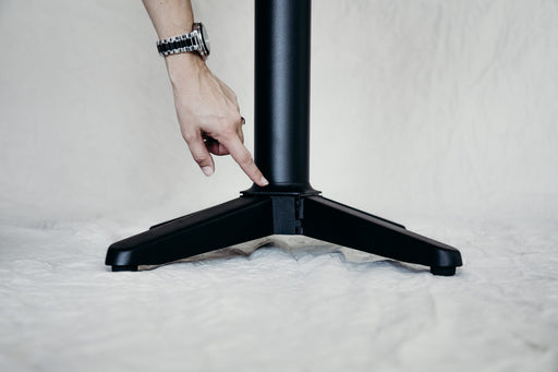 Easy to install metal construction Measures 3" x 3" x 28.5" Powder coat with sand texture black finish Designed for use with standard height table...