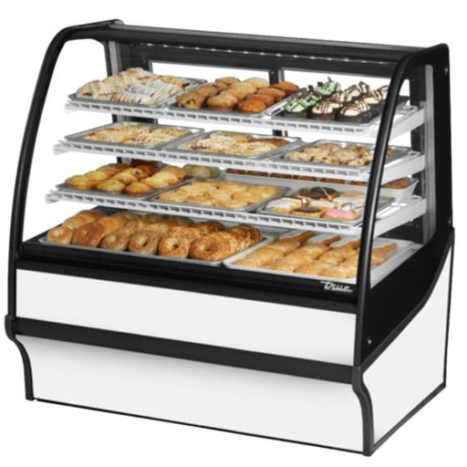 This True TDM-DC-36-GE/GE-B-W 36" Curved Glass, Glass End Dry Case Display Merchandiser combines efficient, high volume merchandising with an ele...