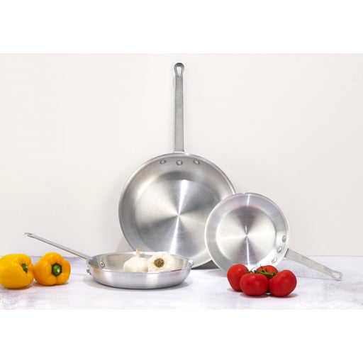 8" diameter fry pan 3003 aluminum Majestic natural finish 3.5 mm thickness Evenly distribute heat across the pan surface Compatible with gas, ele...