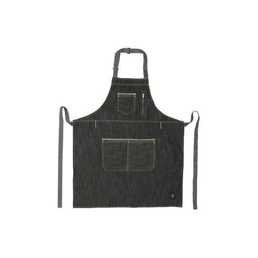 80/20 Cotton-Poly blend Heavyweight dark wash denim Contrast stitching Adjustable buckle neck strap for best fit 2 vertical waist pockets Open che...