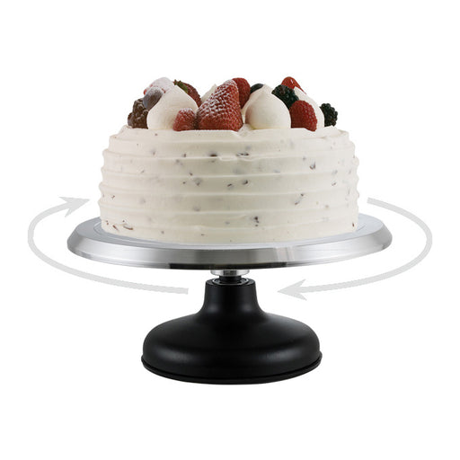 12" cake decorating stand Made of aluminum alloy Smooth ball-bearing mechanism Cast iron base with silicone bottom for steady grip Features: ...