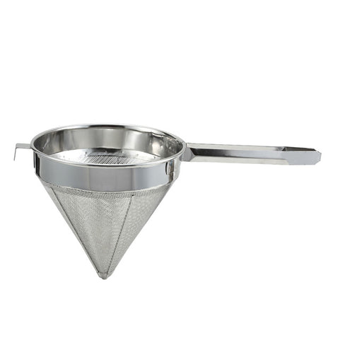 Stainless Steel Construction Extra Fine Mesh Hollow Handle Dimensions: 8" Silver L-Shaped Hook Conical Shape Description Sporting a conical des...