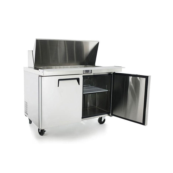 The 48-inch Atosa sandwich prep table comes equipped with a full width cutting board making it easy to prepare sandwiches and salads right on top of the unit. The extra large pan area on top can hold 18 1/6-size food pans, giving you and your customers even more variety on toppings and other ingredients available.
