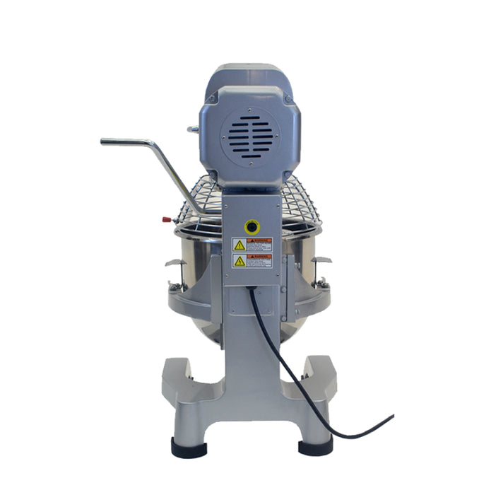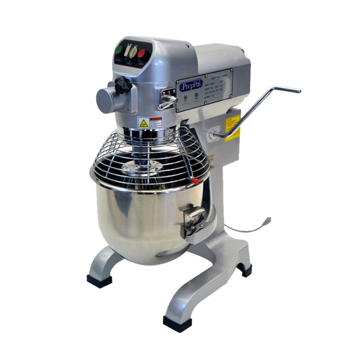 The PPM-20's stainless steel bowl, safety guard, and dough hook are removable for easy cleaning. Its 115V/1100W power allows it to quickly mix large batches of dough. The heavy duty mixer also includes an emergency stop switch, and its front panel is easy to read and use.