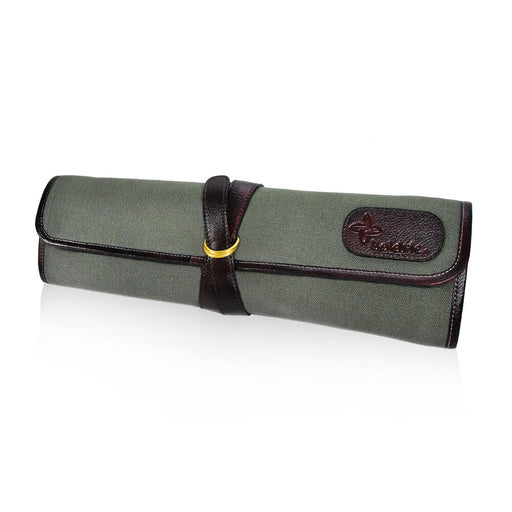 This slim knife bag has 7 slots for knives and tools and can hold a knife with an overall length of 17” (42 cm). When unrolled each knife bag has an overall dimension of 19” x 19” (48 cm x 48 cm).