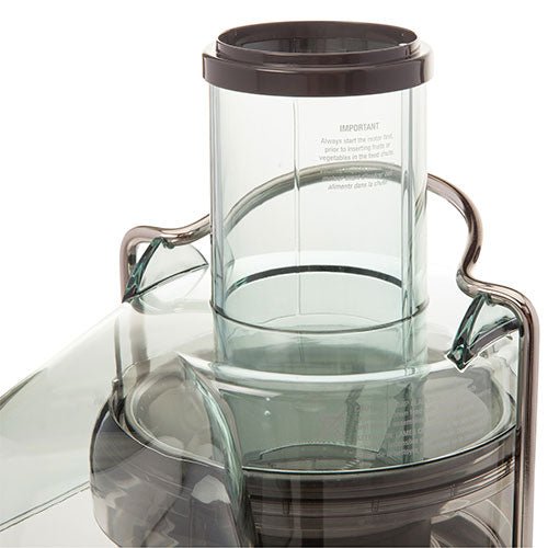 3 inch feed chute – It comes with an extra wide 3″ feed chute. Most fruits and vegetables require some cutting up and sizing in order to make them fit appropriately through the chute. With this extra wide chute, most fruits and vegetables, such as apples, carrots and cucumbers, will not need to be cut in size to fit into the chute, they can be fed in whole.
