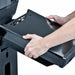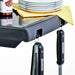 - Folding side shelves with integrated tool hooks provide a functional prep area