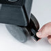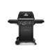 Logistical efficiency is addressed through the Sure-Lite electronic ignition system and high-quality resin side shelves that fold down easily to save floor space when stored. The enclosed black cabinet base provides secure storage for accessories, while wheels & casters ensure stability and easy movement surfaces. This model combines a space-saving design with the high-output requirements of a professional-grade outdoor station.