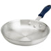 The Browne Thermalloy fry pan has a wide base that allows it to sit on flat burners and eliminating hot spots. Constructed with aluminum, the pan stands up to commercial use, and its cooking area heats evenly. Strength is added with the handle that is attached by rivets. The rivets are offset, allowing the center rivet to support the pan and reduces the strain on the other rivets.