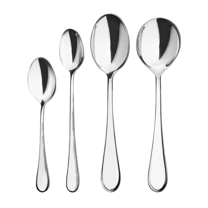 Made of 18/0 stainless steel, Browne 501402 7.75" Lumino Dessert Spoon has a mirror finish that provides a sleek and modern look. The bowl of the spoon is slightly curved to make it easy to scoop and serve ice cream, cakes, puddings and other desserts. It is also durable enough to resist scratches, dents, and corrosion, and is dishwasher safe for fast and easy clean up.