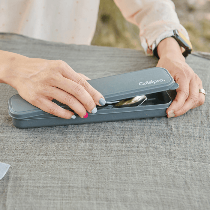 Its material resists corrosion and retains its appearance over time. This personal cutlery set is dishwasher-safe, making sanitation effortless once the user returns home, and guaranteeing that the set remains a hygienic and reusable accessory. The Cuisipro 747906 Stainless Steel Personal Cutlery Set the perfect everyday portable accessory.