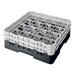 This Cambro 16S434110 16 compartment black full size Camrack comes with everything you need for washing, storing, and transporting large cocktail glasses, delicate wine stems with oversize bowls, and other items with a diameter of up to 4 3/8", standing up to 5 1/4" in height. Included is (1) gray 16E1 extender, (1) gray 16E2 extender and (1) black-colored BR258 base rack.