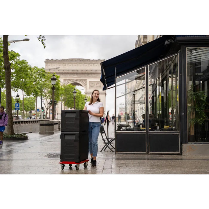 The Cambro CDC300358 Cam GoBox Compact Camdolly is a durable and versatile transport solution for your catering needs. This compact and lightweight dolly measures 24.9" x 17.4" x 7.3", making it easy to maneuver in tight spaces and perfect for transporting smaller Cambro Cam GoBoxes.