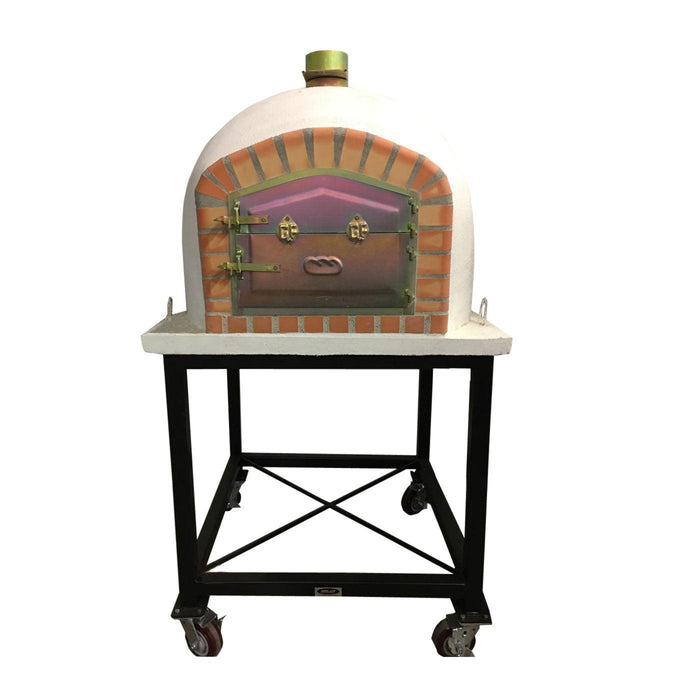 The pizza oven’s floor is constructed from firebricks rather than clay tiles for added durability. Firebricks also heat up more effectively, leaving you with perfectly cooked and crispy crust. The inside of the dome is made up of white refractory bricks that radiate heat inside the oven at every angle, eliminating the possibility of cold spots. The height of the dome provides intense heat without being damaging, making it perfect for baking all sorts of dishes like roasts, fish, paellas, stews, and bread.