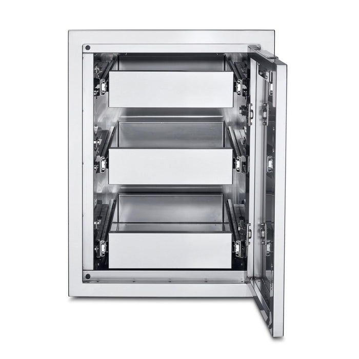 Create a uniform look throughout your Crown Verity outdoor kitchen using our Large Built-In Cabinet. Made of 304 stainless steel construction and featuring three soft close single drawers, this built-in component will increase the storage space in your outdoor kitchen. Great for organizing tools and accessories this is a must to complete your entertainment space.