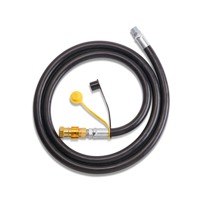 The hose is 0.75 inches in diameter and is equipped with a quick disconnect that makes it easy to attach and detach from your natural gas line for cleaning, maintenance, and transport.