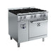Special heavy duty chrome plated knobs for durability and easy cleaning. The configuration of bezels and knobs provides high level of protection against water infiltrations. Right-angled side edges to allow flush fitting between units. Unit may be installed on castors. 24" (610 mm) static oven 34,000 BTU/hr (10 kW) with unique baffle above the burner distributes heat to provide even cooking temperatures throughout the cavity.