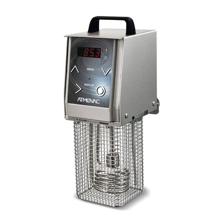 The Eurodib SOFTCOOKERXP 120 Thermal Immersion Circulator is a high-tech kitchen device that uses precise temperatures to cook food safely and quickly. The temperature range is between 24°C and 99°C, making it ideal for sous-vide recipes. The controller is easy to set and use, with a LED display for readability and simple buttons to adjust the temperature.