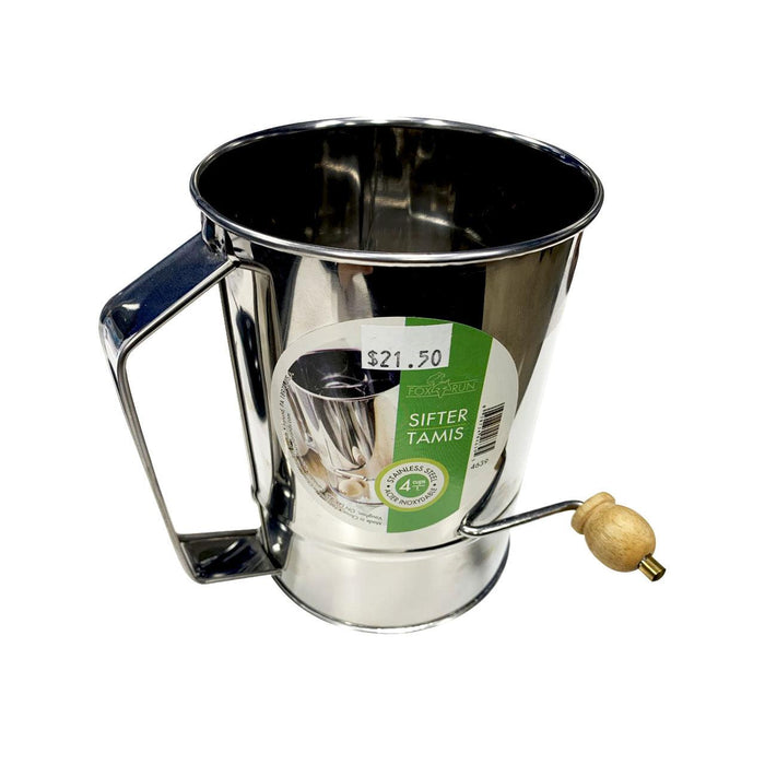 Highly durable, rust-resistant, and easy to clean, this Fox Run 4-Cup Rotary Flour Sifter is great for mixing ingredients and sifting flour with ease.