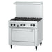 This range also features a standard sized oven measuring 26.25” x 22” x 13”. The oven floor and interior door are porcelain ribbed with an aluminized top, sides, and back. A straight steel tube oven burner produces 33,000 BTU/hr or 9.67 kW of power and can be adjusted with a thermostat from “Low” to 500°F (260°C). The oven also comes equipped with a nickel plated rack that can be placed on two different levels. The heavy-duty door features a keep-cool handle ensuring the safety of workers in a busy and bustling kitchen.