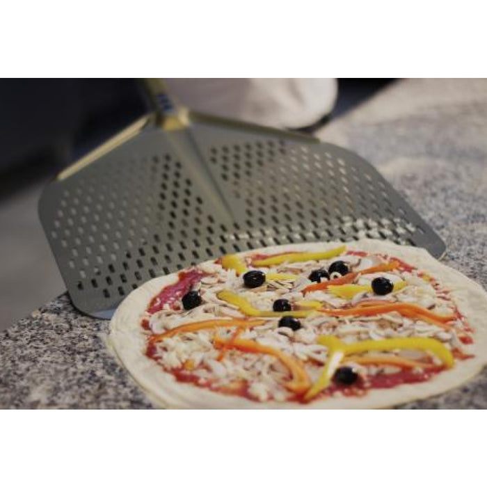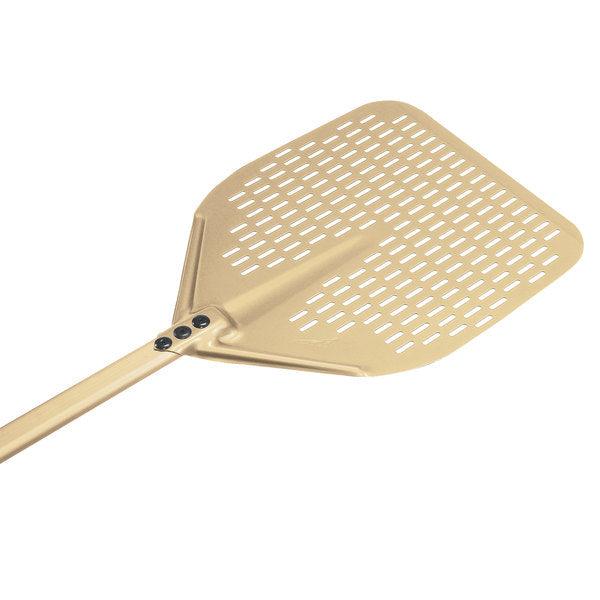 GI Metal Gold 14" Aluminum Square Perforated Pizza Peel with 71" Handle - AV-37RF/180