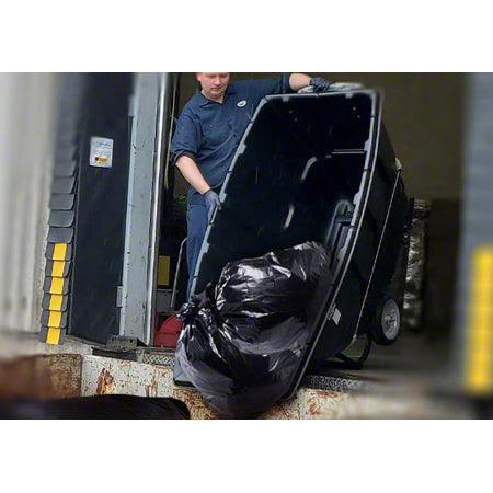 Tilt trucks are a great strong, durable yet lightweight and dynamically balanced solution for easy transport/maneuverability as you can diagonally drop the truck to pour out or dump heavy loads of waste at an angle. They are easy for single operator use in rolling the truck from collector station to compactor, bailer, or dock containers to easily tilt to dump waste. Engineered with one-piece molded truck bodies with reinforced lips and hooks that hold plastic garbage bags and feature inset wheels to prevent banging against walls, elevators and doorways. Constructed with polyethylene won’t rust, pit corrode and will absorb moisture and are FDA and USDA approved materials. Inset 4" swivel casters, comes with handle and garbage bag hooks. Utility-duty uses for wood, strapping, heavy corrugated materials.