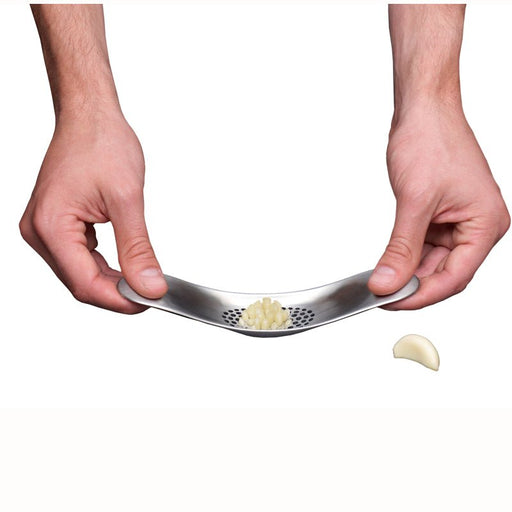 With sturdy, die-cast zinc construction and a large capacity garlic chamber, our Garlic Press crushes garlic with a squeeze. The efficient hole pattern easily pushes garlic through, and a built-in cleaner allows for easy cleaning. Just flip the handles over to clean out excess garlic.