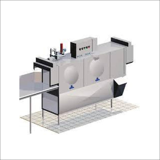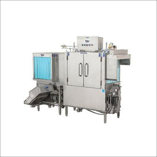 The STERO ER-86S provides a powerful scrapper, recirculating heated wash and rinse tanks followed by a fresh water rinse creating a high volume, low water consuming washer in an 86" footprint. The scrapper tank does the work of a manual pre-rinsing operation, but does it faster and better with 185 gpm of re-circulated water, stripping food soil from above and below the ware. Stripping food soil prior to washing increases labor and detergent savings. Food soil is transferred to the outboard scrap catchment automatically by the rinse water feed-back system keeping the scrapper tank water clean.