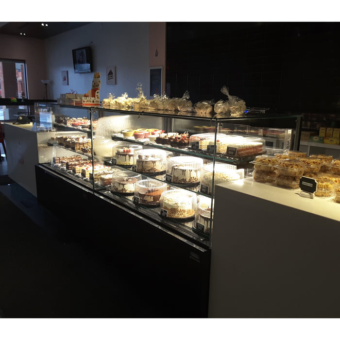 Constructed with robust materials, the Igloo Refrigerated Pastry Case boasts a sleek and modern design. The front glass display is tempered and curved, adding an element of elegance while providing a clear, unobstructed view of your offerings. The rear sliding doors are effectively designed to facilitate easy restocking and maintenance, ensuring seamless operations in fast-paced environments.