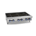 This hot plate features six powerful burners, each equipped with its own precise control knobs, allowing for simultaneous use of multiple pots and pans, thus enhancing productivity. The burners boast a manual ignition system and are constructed with heavy-duty cast iron grates, providing superior heat retention and distribution for consistent cooking results. The grates are removable, facilitating effortless cleaning and easy access to the burners.
