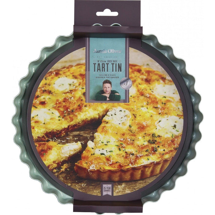 Whether you treat yourself or someone else, you’ll love the results from this Jamie Oliver JB1045 10" Non-Stick Carbon Steel Loose BaseTart Tin. Jamie’s beautiful tart tin is a baker’s dream.