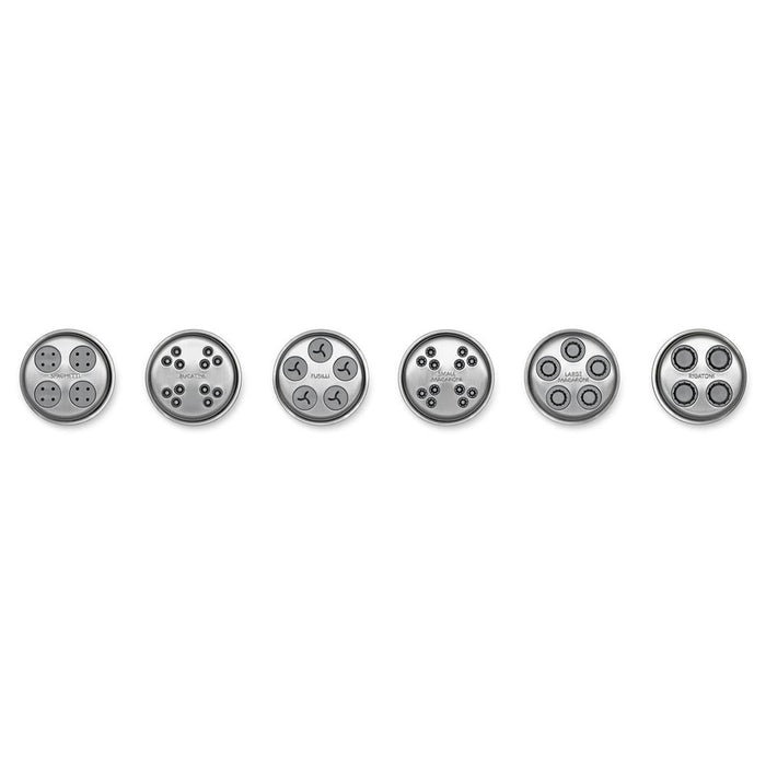 Quickly and easily make delicious fresh pasta with this KitchenAid KSMPEXTA gourmet pasta press attachment! A model of true efficiency, this helpful accessory connects to your KitchenAid mixer so that you can mix your dough and then form noodles from the same convenient unit. This attachment comes with 6 discs that allow you to quickly make spaghetti, bucatini, fusilli, rigatoni, small macaroni, or large macaroni!