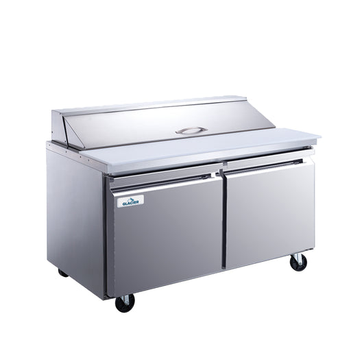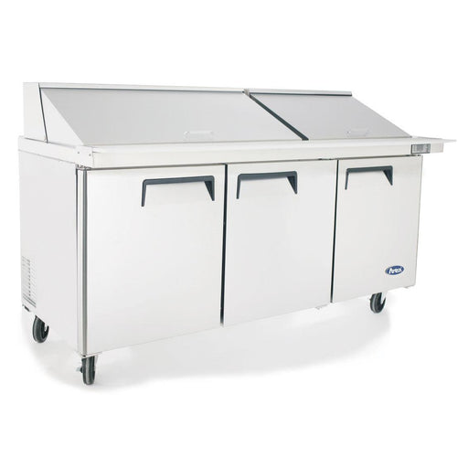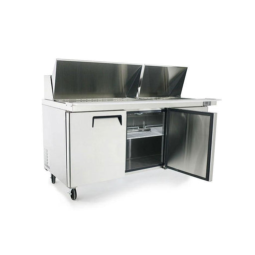 The 36-inch Kool-It sandwich prep table comes equipped with a removable, easy to clean 9.5” cutting board, 1” thick insulated lids and a coated evaporator coil. This prep station also features a refrigerated base with 9.5 cubic feet of storage space for keeping extra meat, vegetables, and fruit at food safe temperatures prior to serving or adding to available food pans.