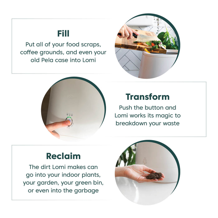 Lomi begins by heating and grinding your food waste. Through the cycle, the sensors measure and control the moisture content and temperature inside while the airflow system provides a continuous supply of oxygen. The airflow system also consists of a proprietary dual-filter design that helps neutralize the odor.