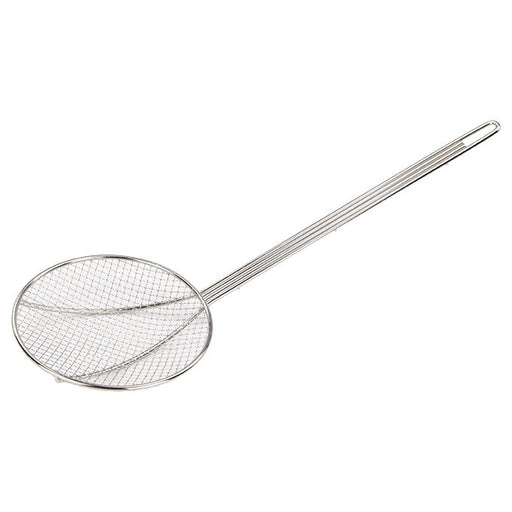 This skimmer is constructed of tin-plated steel, which is durable, rust-resistant and can endure many years of uses. This round skimmer features scroll mesh allowing for heavy-duty uses. Anything floating to the top of your culinary creations can be skimmed with ease.