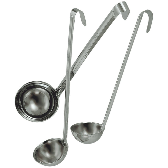 Thanks to its stainless steel construction, it is highly durable and easy to clean. In addition, this ladle's deep bowl allows for easy service either you're serving wet or dry food. With its built-in hook design, you can easily put in the edge of a pot or simply hang on the wire rack.